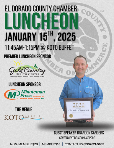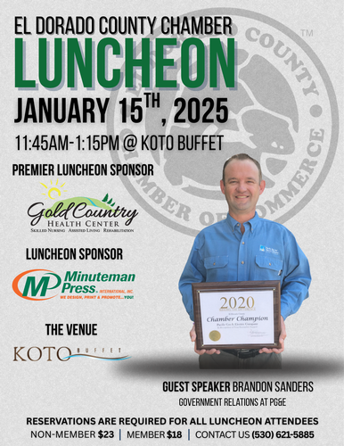 Our monthly business luncheon Is held at Red Hawk Casino - KOTO BUFFET, which is typically held on the third Thursday of the month. Our luncheons have a member attendance of 60 to 70 individuals. Networking begins at 11:45 am, followed by the meeting at noon. Each month, we have a new guest speaker who brings valuable insights. The chamber business luncheons provide an excellent platform to connect with other members of the business community and exchange information. Make the most of your chamber membership by forging new connections.