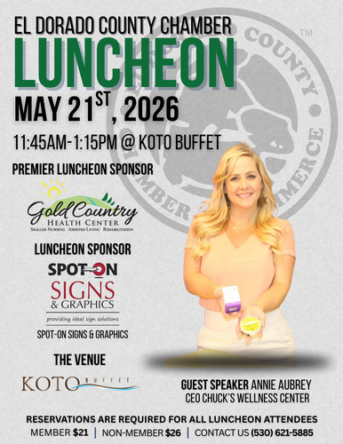 Our monthly business luncheon Is held at Red Hawk Casino - KOTO BUFFET, which is typically held on the third Thursday of the month. Our luncheons have a member attendance of 60 to 70 individuals. Networking begins at 11:45 am, followed by the meeting at noon. Each month, we have a new guest speaker who brings valuable insights. The chamber business luncheons provide an excellent platform to connect with other members of the business community and exchange information. Make the most of your chamber membership by forging new connections