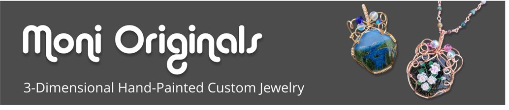 Moni Originals is a home-based, artist-owned business creating charming hand-painted resin jewelry and art, from cabochon pendants and post earrings to painted barrettes, bookmarks, and wine stoppers.
